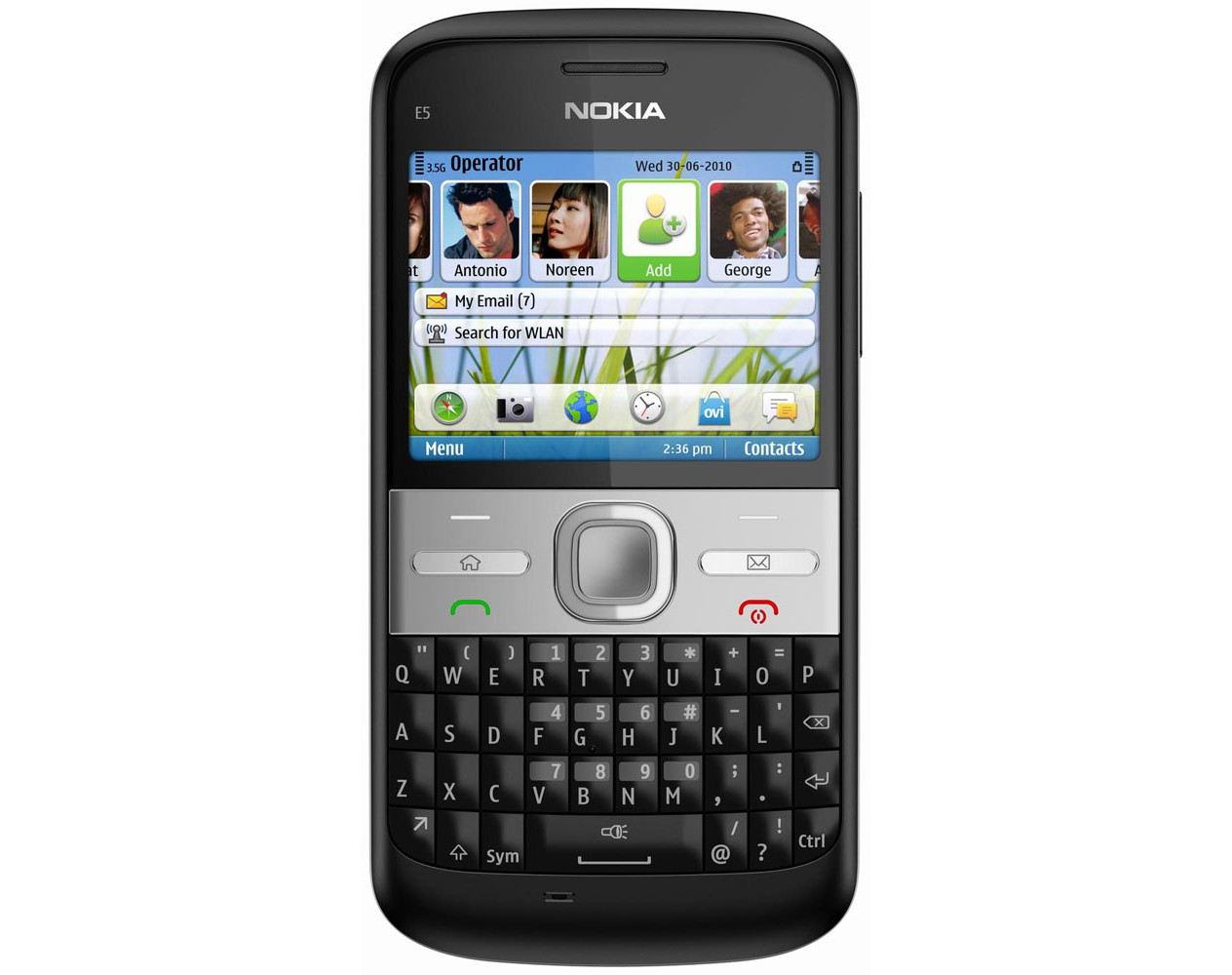Discover more ways to stay connected with friends, family, business contacts and everyone important to you with the Nokia E5-00. It has everything you need to stay in touch with a variety of email and messaging options, while also helping you to take and share pics and videos, explore the web, connect through social networking, access work and personal email, navigate your day and more. The affordable Nokia E5 even manages to fit a full QWERTY keyboard into its compact, eye-catching design for quick and easy messaging on the go. Plus, there are plenty of features to make it the perfect business-focused device. Stay productive and stay in the loop with work no matter where you are with simple setup and access for your corporate email account. The Nokia E5 makes communicating with work a breeze with Mail for Exchange, the free, direct and secure corporate email solution that offers a robust desktop-like email experience right on your phone, with email, calendar, contacts and more. Plus, your work email shows up on your phone instantly, so you don’t have to wait for important emails. The Nokia E5 also features a fully integrated Microsoft Communicator Mobile client, to provide your mobile device the same great IM, contacts and usability that you enjoy on your computer. Keep in touch however you like with a variety of ways to connect to others with the Nokia E5. The home screen offers an easy visual way to view your contacts and makes it easy to organize the people you talk to most. The Nokia E5 also features one-click access to messaging as well as easy email setup and support for plenty of popular personal email services. The leading IM services have also been seamlessly integrated onto the phone. The Nokia E5 also offers free voice-guided navigation from Ovi Maps so you always know where you’re going. Plus customize your phone with thousands of available apps from Ovi Store. Connect with everyone and everything you want with the Nokia E5.